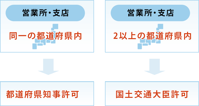 • 国土交通大臣許可:2つ以上の都道府県内に営業所を持ち、営業する場合。