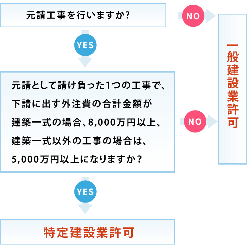 (例)1次下請けで請負金額2億円の工事を受注後、2次下請に1億円で発注→ 一般建設業許可